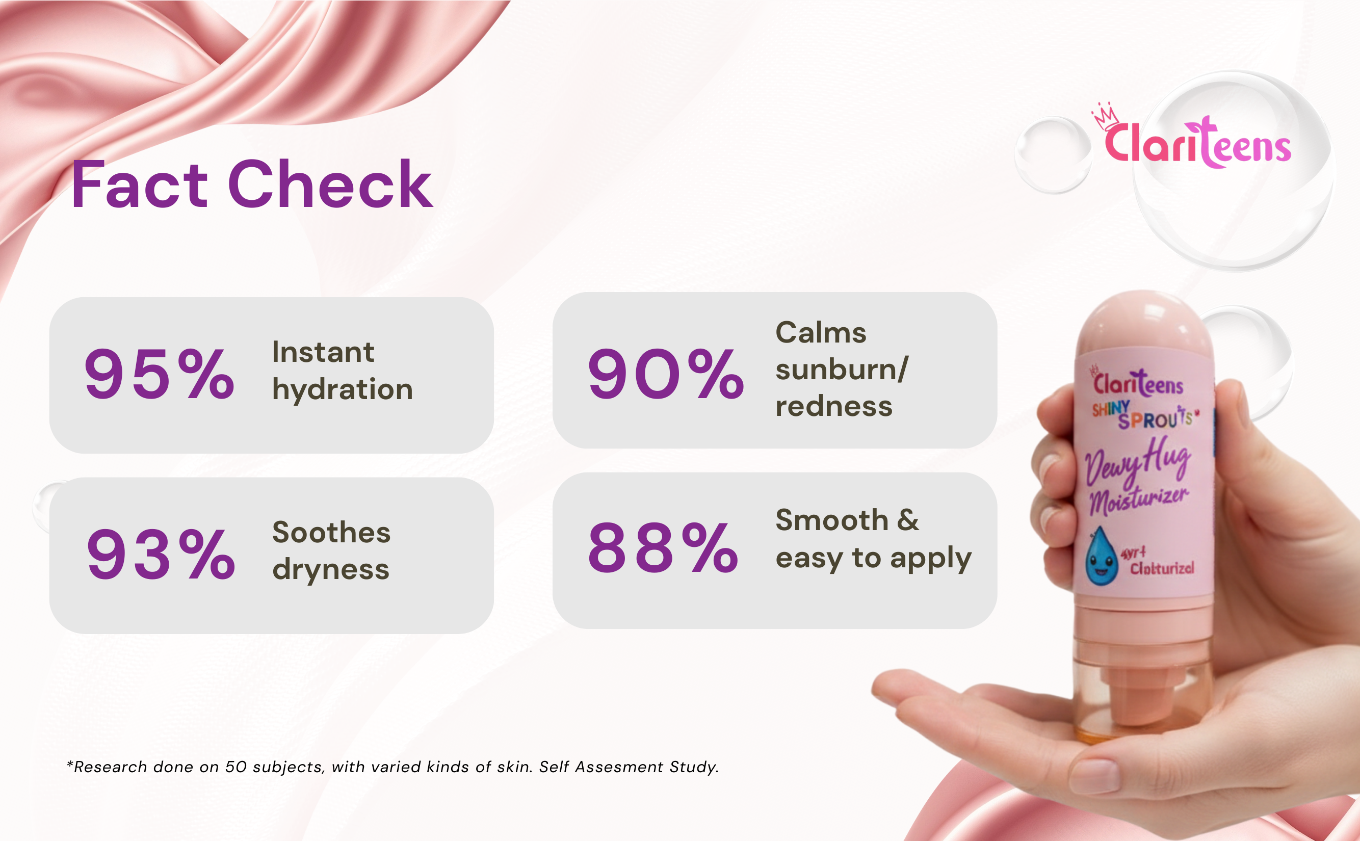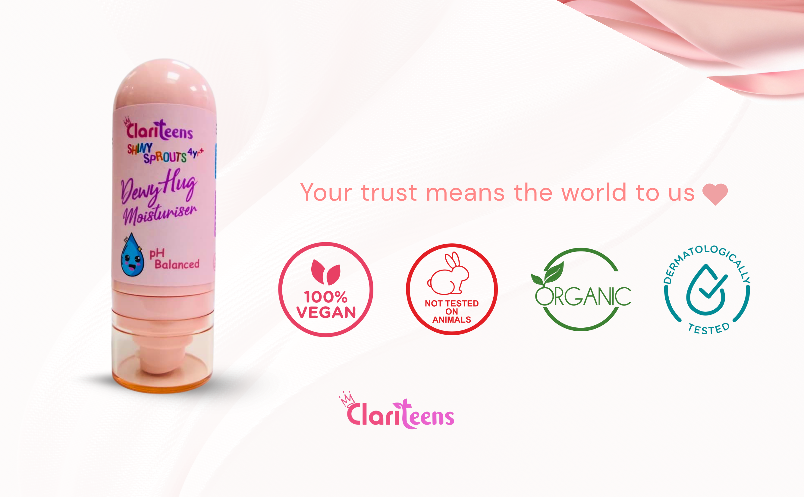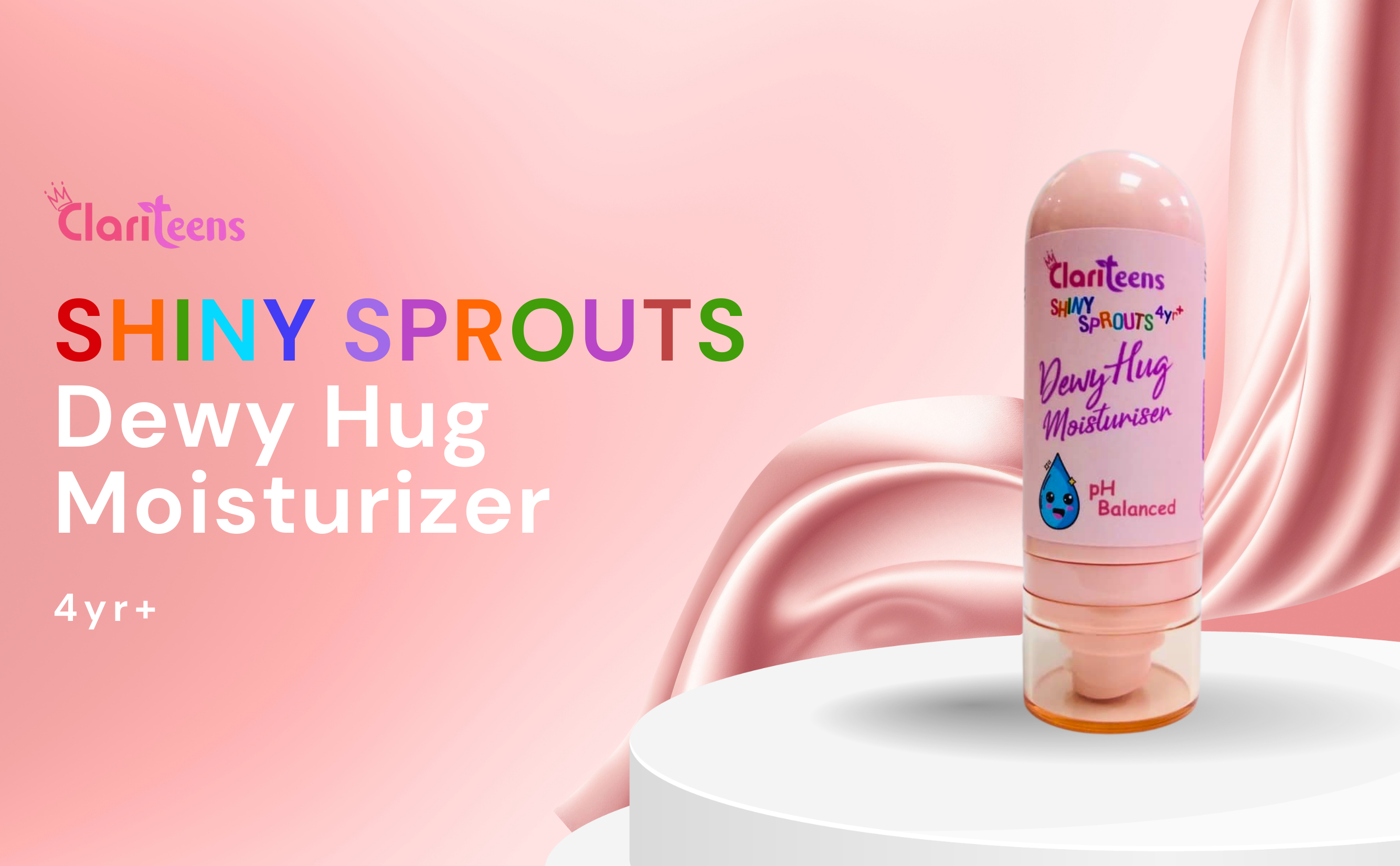 Clariteens Shiny Sprouts Dewy Hug Moisturizer keeps your child’s skin soft, hydrated, and glowing—without harsh chemicals. Enriched with Shea Butter, Aloe Vera, and Vitamin E, it nourishes deeply while protecting against dryness and pollution. With its lightweight, non-greasy texture, it absorbs quickly, making it perfect for everyday use. Safe, gentle, and crafted with natural care—just like your hug.